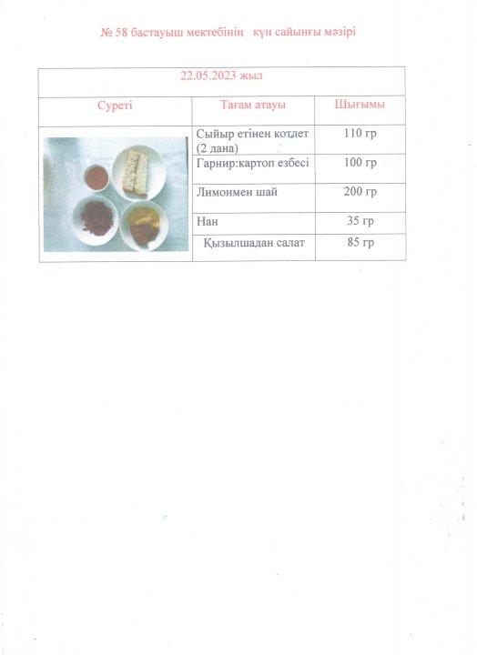 Мектептің күнделікті ас мәзірі » НШ №58