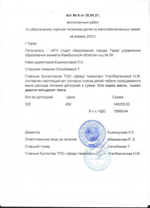 АКТ выполненных работ 2020 г, 2021 г » НШ №58